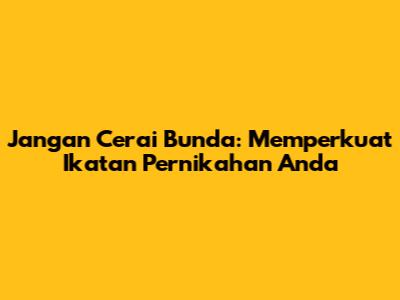 Guys, pernikahan itu kayak taman, perlu dirawat biar bunganya terus mekar. Kadang ada aja tuh, masalah datang silih berganti, bikin pusing kepala. Nah, kalau Bunda lagi ngadapi masalah rumah tangga yang bikin mikir sampai ke ujung rambut, inget ya, jangan cerai bunda! Perceraian itu bukan jalan keluar instan, malah bisa jadi awal masalah baru yang lebih rumit. Yuk, kita kupas tuntas gimana caranya memperkuat ikatan pernikahan biar badai rumah tangga bisa dilewati bareng-bareng. Artikel ini bakal ngasih kamu tips jitu dan solusi kreatif buat dapetin kembali keharmonisan yang sempat hilang.