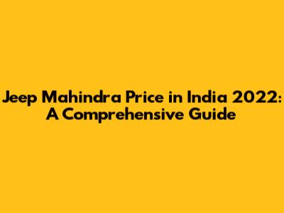 Jeep Mahindra Price In India 2022: A Comprehensive Guide