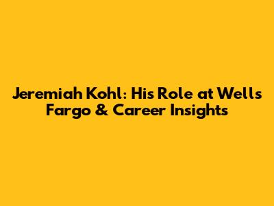 Jeremiah Kohl: His Role At Wells Fargo & Career Insights