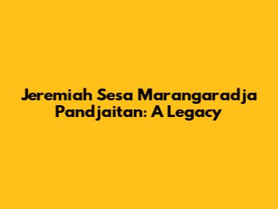 Jeremiah Sesa Marangaradja Pandjaitan: A Legacy