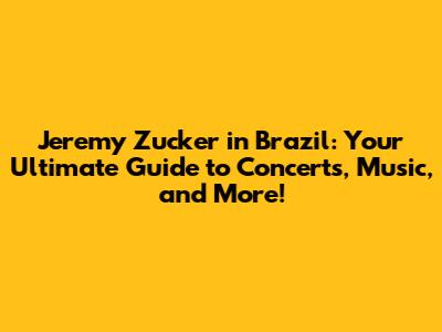 Jeremy Zucker In Brazil: Your Ultimate Guide