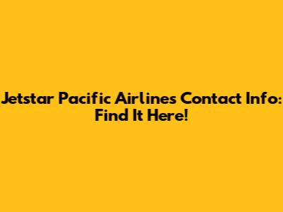 Jetstar Pacific Airlines Contact Info: Find It Here!