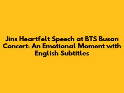 Jin's Heartfelt Speech: BTS Busan Concert With English Subtitles