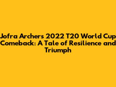 Jofra Archer's 2022 T20 World Cup Comeback