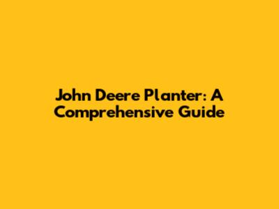John Deere Planter: Comprehensive Guide