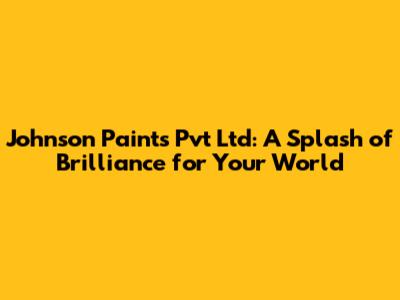 Johnson Paints Pvt Ltd: A Splash of Brilliance for Your World