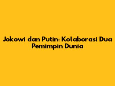 Jokowi Dan Putin: Kolaborasi Dua Pemimpin Dunia