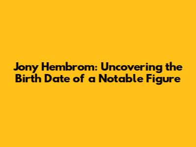 Jony Hembrom: Discovering The Birth Date Of A Notable Figure