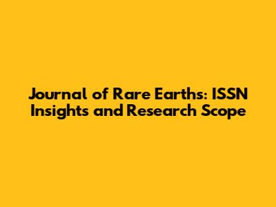 Journal Of Rare Earths: ISSN Insights And Research Scope