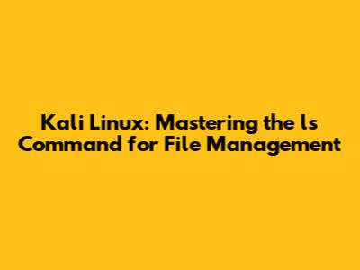Kali Linux: Mastering The Ls Command For File Management