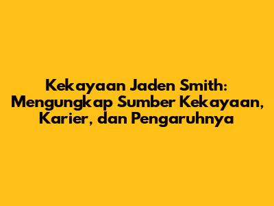 Jaden Smith memang bukan orang sembarangan. Sebagai seorang aktor, rapper, penyanyi, penulis lagu, dan pengusaha, ia memiliki banyak sekali sumber penghasilan. Jadi, berapa sih kekayaan bersih Jaden Smith saat ini? Menurut beberapa sumber terpercaya, perkiraan kekayaan Jaden Smith mencapai angka yang fantastis, yaitu sekitar $10 juta hingga $15 juta USD. Wow! Angka yang sangat mengesankan untuk seorang anak muda. Tentu saja, angka ini bisa berubah seiring dengan kesuksesan proyek-proyeknya di masa depan. Perlu diingat bahwa ini hanyalah perkiraan, karena sangat sulit untuk mengetahui secara pasti jumlah kekayaan seseorang. Namun, angka ini memberikan gambaran jelas tentang betapa suksesnya Jaden Smith di berbagai bidang yang ia geluti. Kekayaan ini adalah buah dari kerja keras dan dedikasinya dalam mengembangkan berbagai talenta dan bisnis yang ia miliki. Ini juga menunjukkan betapa cerdasnya ia dalam mengelola potensi dirinya dan memanfaatkan peluang yang ada di sekitarnya. Dengan gaya hidup yang cukup mewah dan investasi di berbagai bidang, tidak heran jika kekayaan Jaden Smith terus bertambah dari waktu ke waktu. Sebagai seorang publik figur, Jaden Smith juga seringkali mendapatkan penghasilan dari endorsement dan kerjasama dengan berbagai merek terkenal. Selain itu, ia juga memiliki bisnis yang bergerak di bidang fashion dan gaya hidup, yang juga menjadi sumber pendapatan yang signifikan.