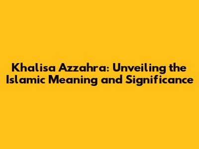 Khalisa Azzahra: Islamic Meaning & Significance