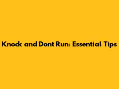 Knock And Don't Run: Essential Tips