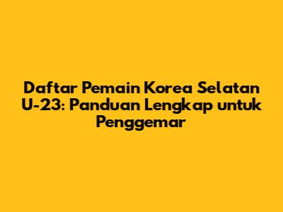 Profil pemain Korea Selatan U-23 memberikan gambaran lengkap tentang setiap pemain, termasuk latar belakang, statistik, dan pencapaian. Informasi ini membantu penggemar untuk lebih mengenal pemain favorit mereka dan memahami kontribusi mereka bagi tim.