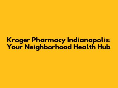 Kroger Pharmacy Indianapolis: Your Neighborhood Health Hub