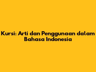 Kursi: Arti Dan Penggunaan Dalam Bahasa Indonesia