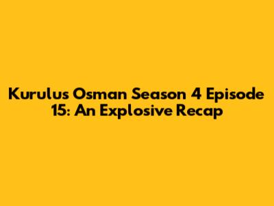 Hey everyone! Get ready, because we're diving deep into Kurulus Osman Season 4 Episode 15! This episode, as you all probably know, was packed with action, suspense, and those oh-so-important political maneuvers that keep us on the edge of our seats. If you're anything like me, you've been eagerly waiting for the next installment, dissecting every scene, and theorizing about what's coming next. So, let's break down this episode, talk about the key players, the shocking moments, and, of course, where you can watch it if you missed it or want to relive the excitement. Buckle up, because it’s going to be a wild ride!