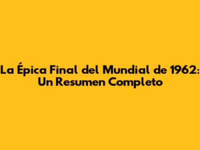 La Épica Final Del Mundial De 1962: Un Resumen Completo