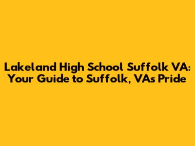 Hey guys! Are you looking for information about Lakeland High School in Suffolk, Virginia? Well, you've come to the right place! This article is your ultimate guide to everything you need to know about this awesome school. We'll dive into the academics, the amazing extracurricular activities, the school's vibrant culture, and everything else that makes Lakeland High School a fantastic place to learn and grow. So, buckle up and get ready to explore what Lakeland High School has to offer!