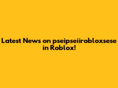 Latest News On Pseipseiirobloxsese In Roblox!