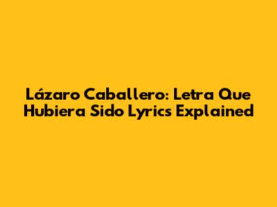 Lázaro Caballero: Letra Que Hubiera Sido Lyrics Explained