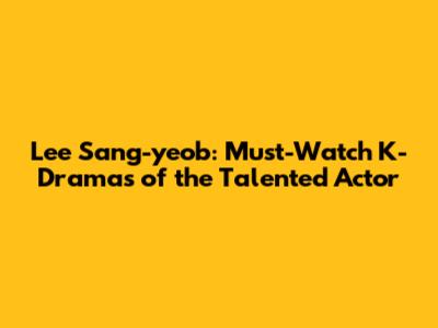 Lee Sang-yeob: Must-Watch K-Dramas Of The Talented Actor