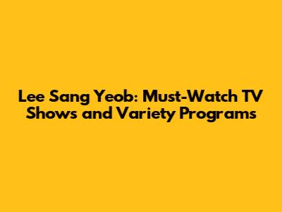 Hey guys! Ever wondered what makes Lee Sang Yeob such a beloved figure in the Korean entertainment scene? Well, buckle up because we're diving deep into the must-watch TV shows and variety programs that showcase his incredible talent and charm. From his breakthrough roles in gripping dramas to his hilarious antics in variety shows, Lee Sang Yeob has proven time and again that he’s a force to be reckoned with. So, let’s get started and explore the amazing world of Lee Sang Yeob's TV appearances!