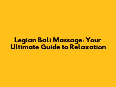 Legian Bali Massage: Your Ultimate Guide