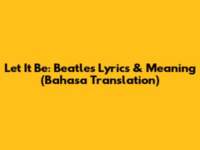 Let It Be: Beatles Lyrics & Meaning (Bahasa Translation)