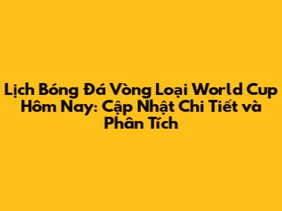 Lịch Bóng Đá Vòng Loại World Cup Hôm Nay: Cập Nhật Mới Nhất