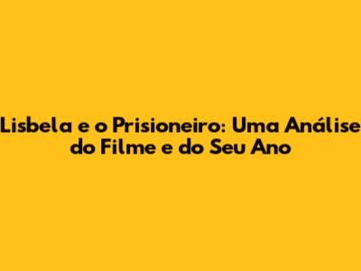 Lisbela E O Prisioneiro: Uma Análise Do Filme E Do Seu Ano