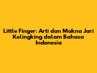 Pernahkah guys bertanya-tanya, apa sih arti dari little finger dalam bahasa Indonesia? Nah, dalam artikel ini, kita akan membahas secara mendalam mengenai little finger artinya dalam bahasa Indonesia, serta berbagai fakta menarik dan makna yang mungkin belum kamu ketahui tentang jari kelingking. Yuk, simak selengkapnya!