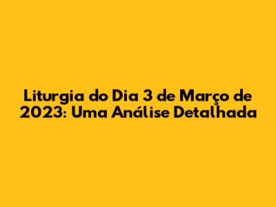 Liturgia Do Dia 3 De Março De 2023: Uma Análise Detalhada