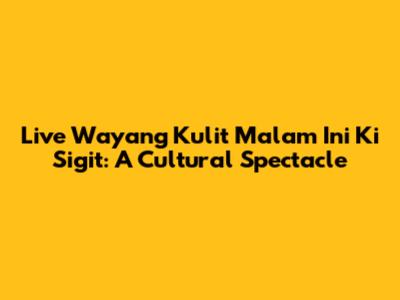 Live Wayang Kulit Malam Ini Ki Sigit: A Cultural Spectacle