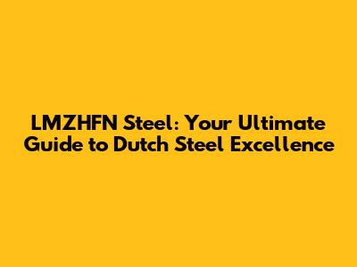 LMZHFN Steel: Your Ultimate Guide To Dutch Steel Excellence