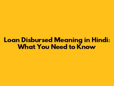 Loan Disbursed Meaning In Hindi: What You Need To Know