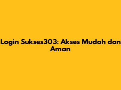 Login Sukses303: Akses Mudah Dan Aman