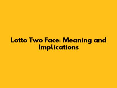 Lotto Two Face: Meaning And Implications