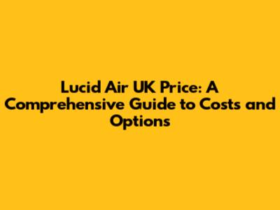 Lucid Air UK Price: Unveiling Costs And Options