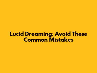 Lucid Dreaming: Avoid These Common Mistakes