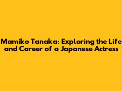 Mamiko Tanaka: A Look Into The Life Of A Beloved Actress