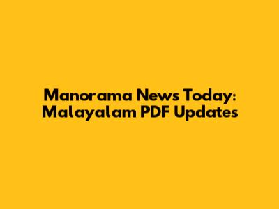 Manorama News Today: Malayalam PDF Updates