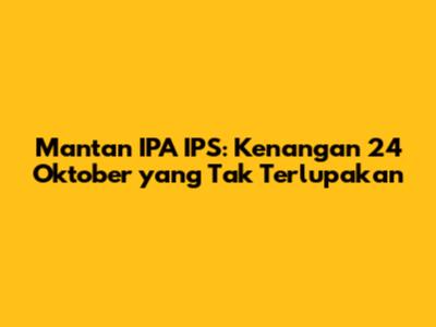 Hey guys! Siapa nih yang masih suka flashback ke masa-masa sekolah? Pasti banyak banget cerita seru dan kenangan manis yang nggak bisa dilupain, kan? Nah, kali ini kita bakal ngobrolin tentang mantan anak IPA dan IPS, khususnya momen-momen di tanggal 24 Oktober yang mungkin punya cerita tersendiri buat kalian. Yuk, simak!