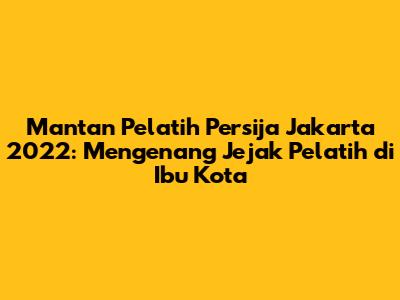 Mantan Pelatih Persija Jakarta 2022: Perjalanan Dan Dampaknya