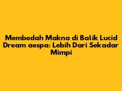 aespa, grup K-pop fenomenal, kembali memukau penggemar dengan lagu-lagu yang tidak hanya memanjakan telinga, tetapi juga mengajak kita menyelami dunia yang kompleks dan penuh makna. Salah satu lagu yang patut untuk dibedah adalah 'Lucid Dream'. Lagu ini bukan sekadar alunan musik yang enak didengar, tetapi juga menyimpan pesan mendalam yang mengajak pendengarnya untuk merenung dan berpikir. Mari kita bedah arti lagu 'Lucid Dream' aespa ini, mulai dari lirik hingga konsep visual yang disajikan.