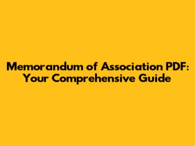 Memorandum Of Association PDF: Your Comprehensive Guide