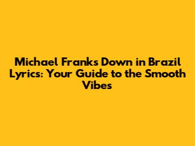 Hey music lovers! Today, we're diving deep into the smooth, soulful world of Michael Franks and his iconic track, "Down in Brazil." If you're looking for those laid-back, sunny vibes that just make you want to sway, you've definitely come to the right place. This song isn't just about the lyrics; it's about the feeling, the atmosphere, and the journey it takes you on. So, grab your favorite drink, kick back, and let's explore what makes "Down in Brazil" such a timeless gem.