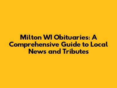 Milton WI Obituaries: Your Guide To Local News & Tributes