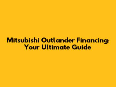 Mitsubishi Outlander Financing: Your Guide To A Great Deal