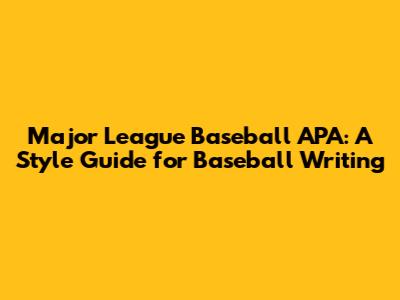 Major League Baseball APA: A Style Guide for Baseball Writing